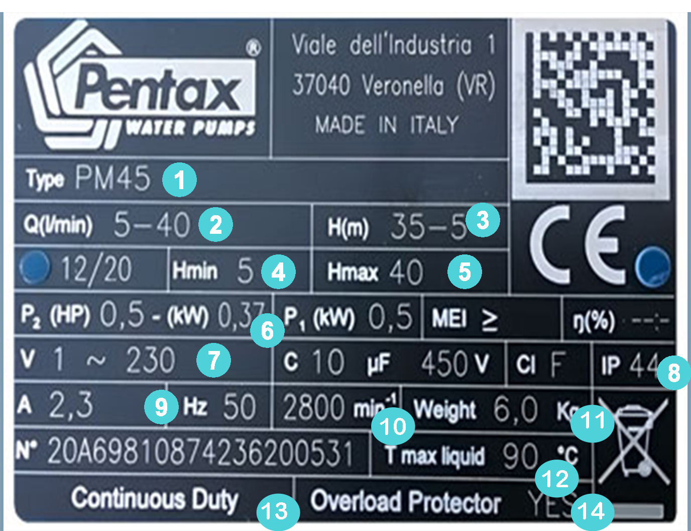 ابعاد پمپ، مسلماً مهم هستند، اما اطلاعات روی برچسب موتورحتی مهمترند: آنها اطلاعات برند پمپ یا موتور، مدل، نوع (تک یا دو سرعته)، قدرت و غیره را به شما میدهند.