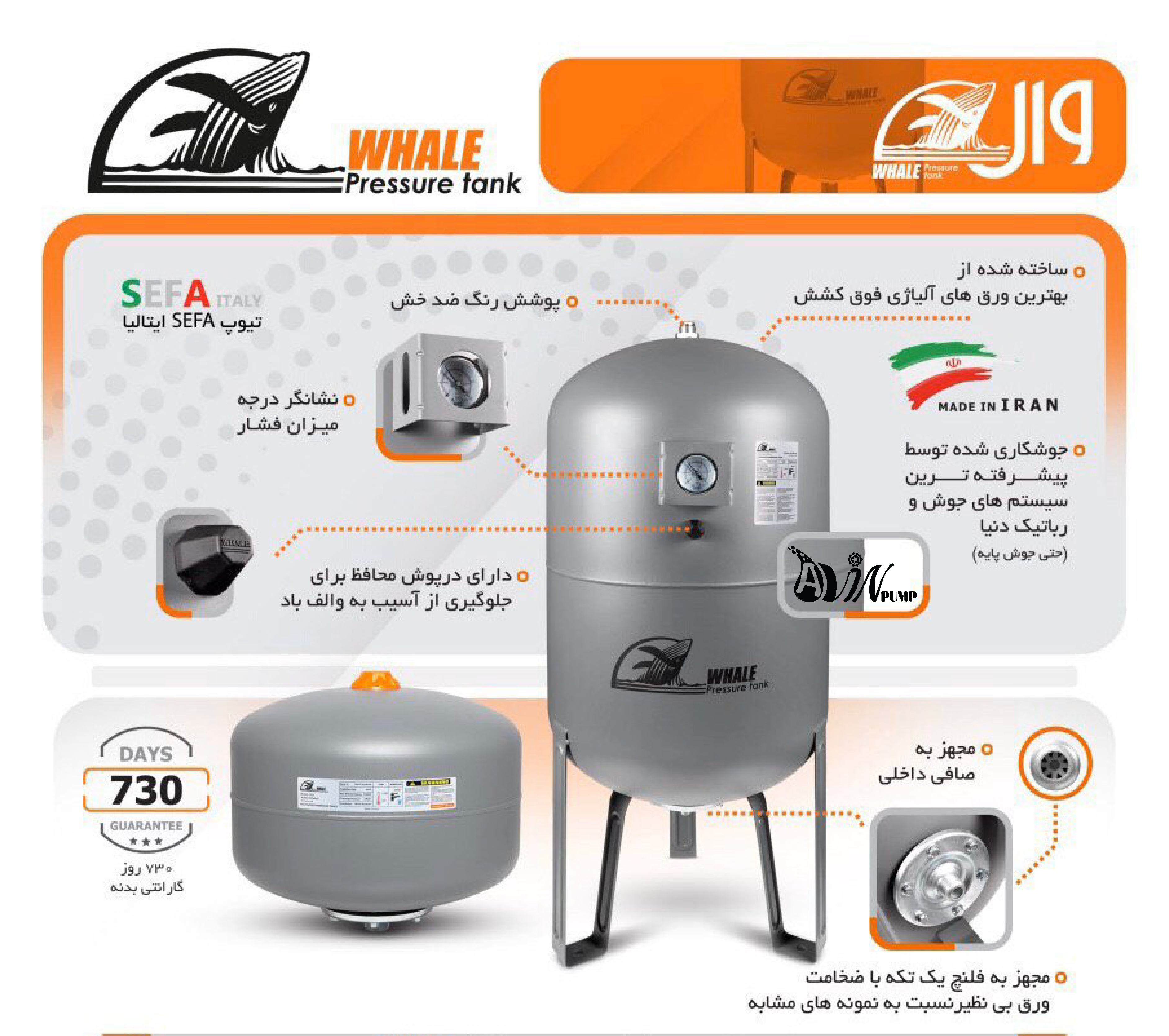 این منبع تحت فشار را با نام منبع انبساط و منبع تیوپی وال whale نیز در بازار عنوان می نمایند. از منبع تحت فشار وال ایران در سیستم های گرمایشی و سرمایشی بعنوان منبع انبساط دیگ و منبع انبساط چیلرهمچنین بر روی بوستر پمپ و بوستر پمپ آتش نشانی نیز استفاده می شود.